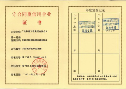 2017年5月,集团顺利通过了徐州市工商行政管理局组织的2016年度“守合同重信用”企业年审工作。