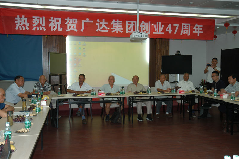 8月8日,集团公司在三楼会议室组织召开创业47周年座谈会议,此次会议由副总经理张华江主持,参加会议的有集团机关全体人员、各项目公司班子成员及员工代表,另外还有董事长的老战友、胡氏家族代表和一直关心和关注广达成长与发展的老领导、老朋友等共计六十余人。