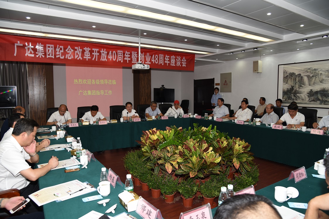 董事长胡传业做了广达创业48周年汇报发言。他指出,为了纪念改革开放四十周年,总结广达创业四十八年来取得的发展成绩,总结经验,谋划在不断变幻的新经济形势下,进一步发展的思路,广达组织召开了此次座谈会。